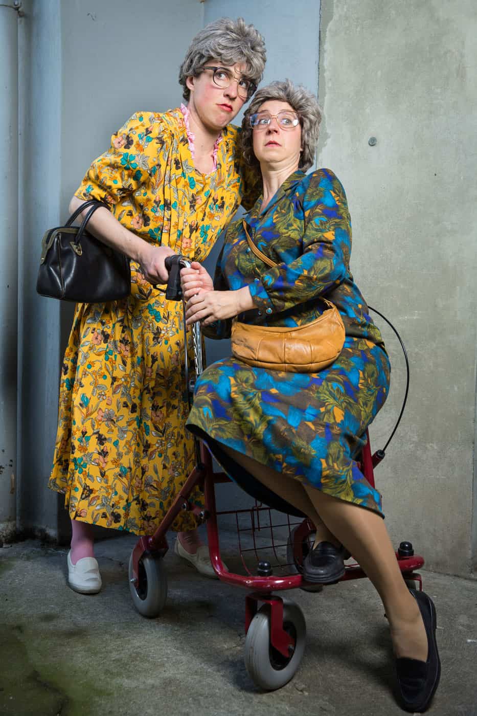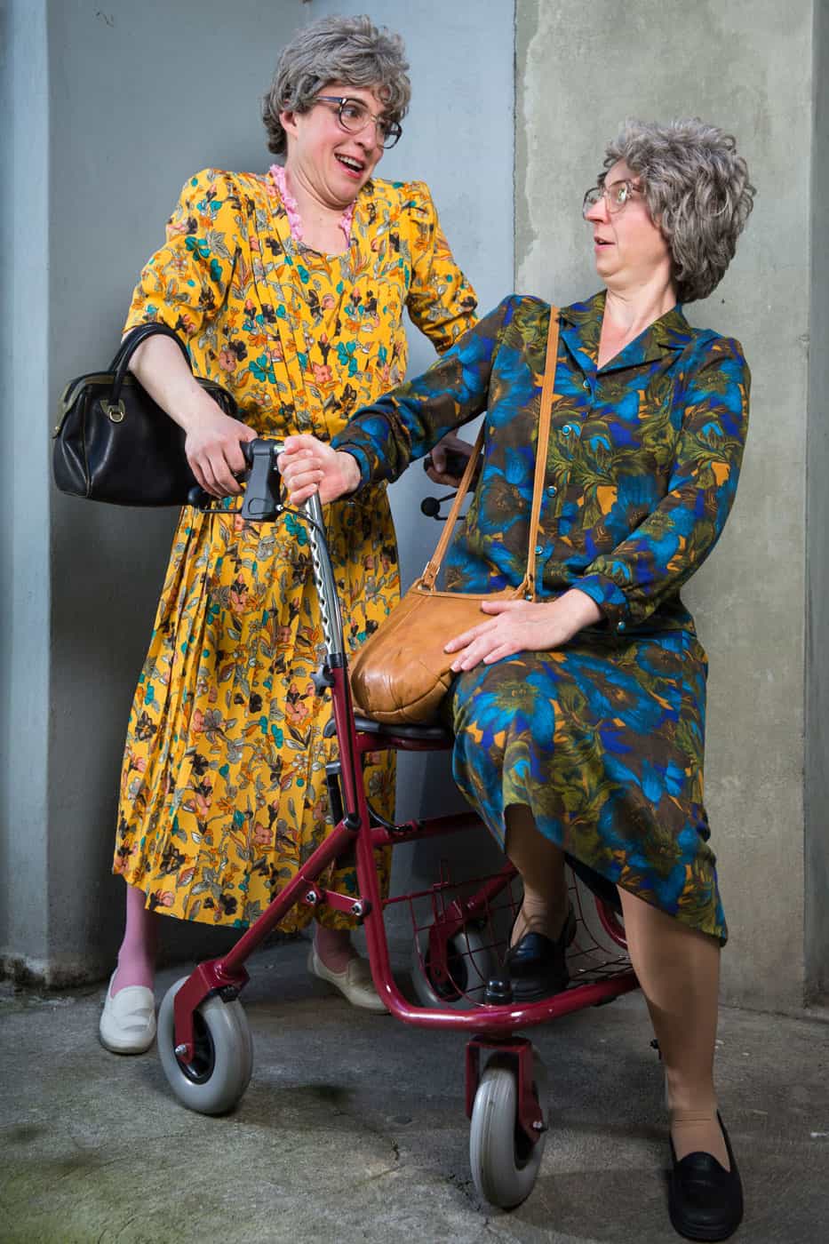 Die beiden rüstigen Damen über 70 sind sowohl im Kopf wie auch körperlich erstaunlich beweglich. Sie treffen garantiert jeden wunden Punkt und formulieren ungeniert aus, was andere für sich behalten. Niemand ist vor ihren träfen Kommentaren sicher und wenn es darum geht, ein Thema kritisch anzugehen, sind sie die Richtigen.